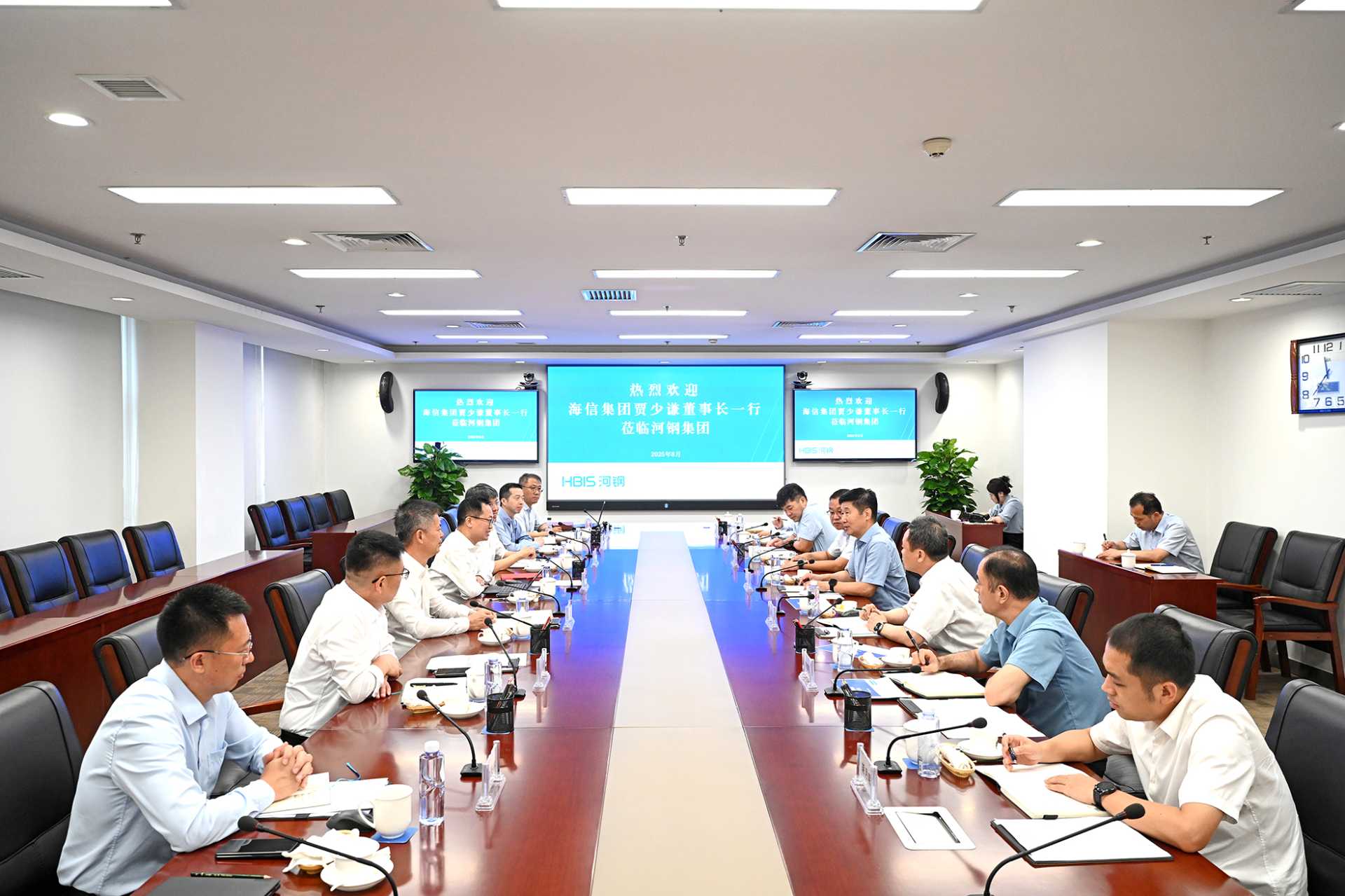 河鋼股份、河鋼銷售、大河金屬和集團(tuán)運(yùn)營(yíng)改善部負(fù)責(zé)人,海信集團(tuán)中國(guó)區(qū)河北營(yíng)銷中心、采購(gòu)中心大宗資源室負(fù)責(zé)人參加座談交流。