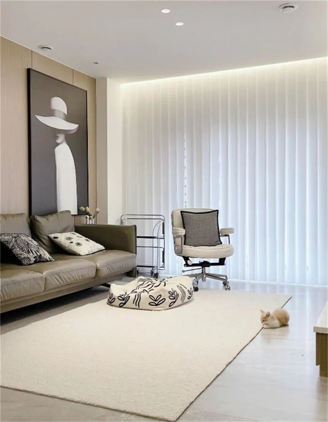 不同材質(zhì),特性也不同。比如棉麻窗簾,柔軟舒適但容易起皺。絲絨窗簾厚重沉穩(wěn)、垂墜感好,但是打理會麻煩一些,所以空間不同選擇的材料也不同。