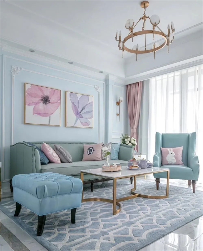 如果墻面做了果凍色系,例如天空藍、檸檬黃、牛油果綠等,窗簾色彩搭配建議選擇同樣果凍色來搭配,會讓整個空間更青春活力。