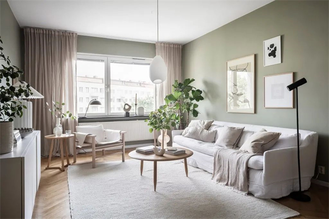 1、同色系墻面、窗簾,是一種保險的搭配方式,優(yōu)點是讓空間的色調(diào)形成統(tǒng)一,擴展了視覺空間,家仿佛變得寬闊了;缺點是略顯單一,少了一些新意。
