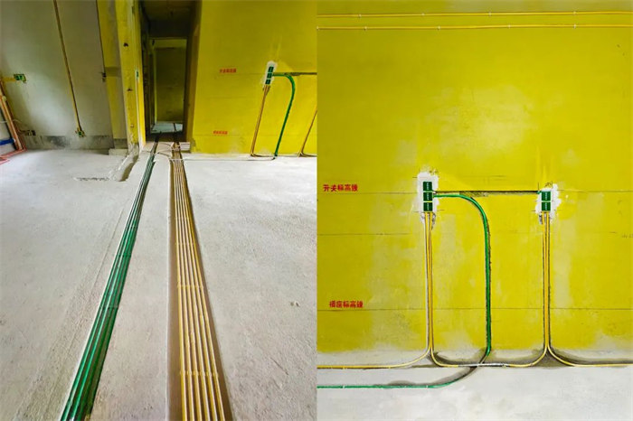 水管線溝切割深度40mm,寬度45mm;線盒開槽尺寸長寬各超5mm,合格。