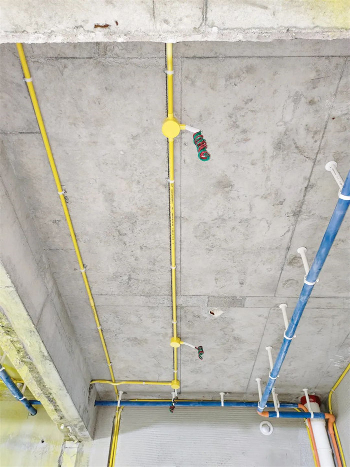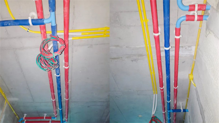 △水管排布感觀橫平豎直,墻體線槽內給水管只能用整管,不允許用直接連接,合格。