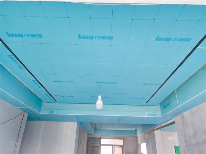△吊頂平梁,梁下過一層石膏板,厚度10mm,縫隙用發(fā)泡膠軟連接,