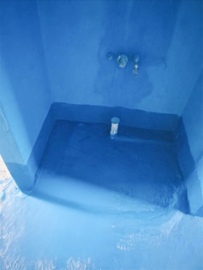 △衛(wèi)生間防水涂層均勻覆蓋在地面,施工無漏刷破損。