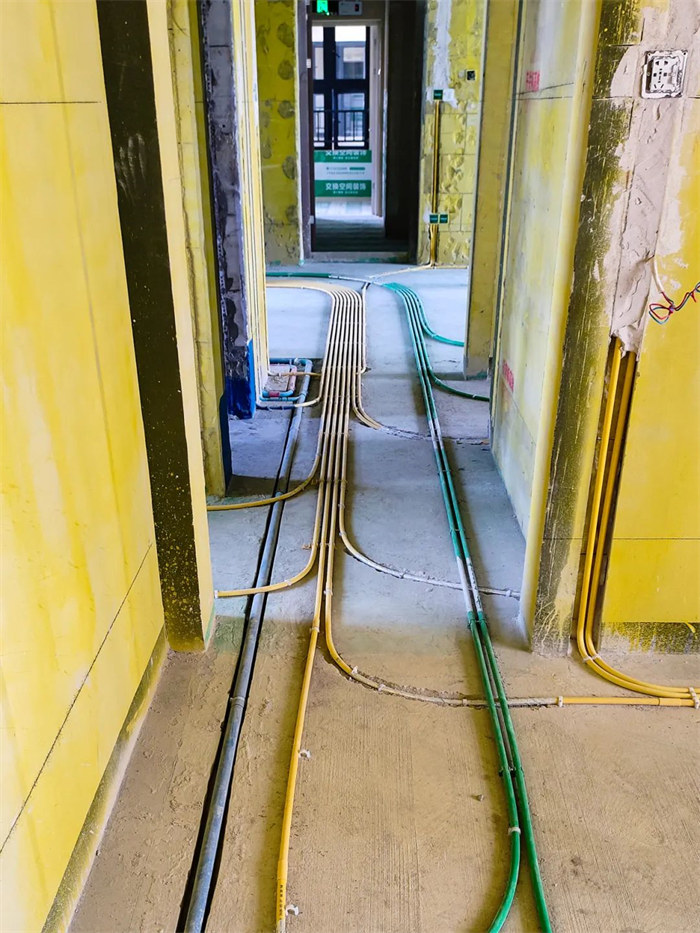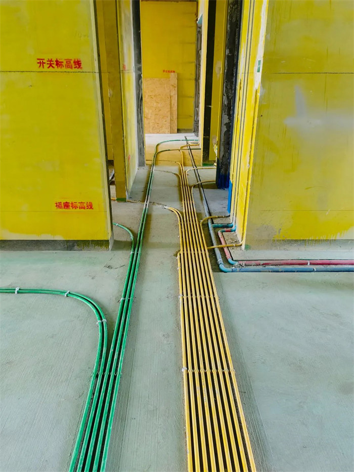 電線(xiàn)管線(xiàn)溝切割深度30mm;電線(xiàn)管線(xiàn)溝寬度:?jiǎn)喂?5mm,雙管55mm;水管線(xiàn)溝切割深度40mm,寬度45mm;線(xiàn)盒開(kāi)槽尺寸長(zhǎng)寬各超5mm,線(xiàn)管排布感觀橫平豎直,合格。
