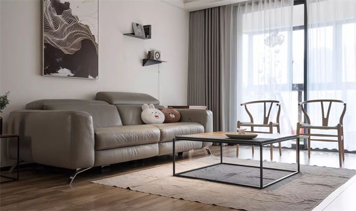 再搭配一套厚實的皮沙發(fā),結(jié)合極簡的鐵藝架茶幾,顯得年輕簡單而精致。