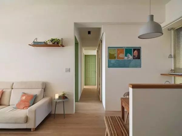 從客廳看玄關(guān)、餐廳,有沒有一種玄關(guān)可以替代衣柜的感覺?住家必需考慮收納問題,這樣的設(shè)計(jì)小編收了。