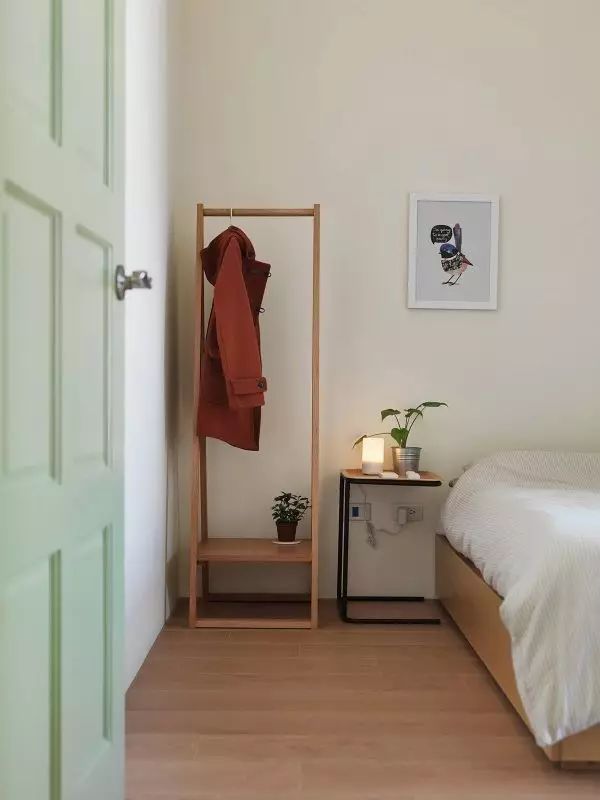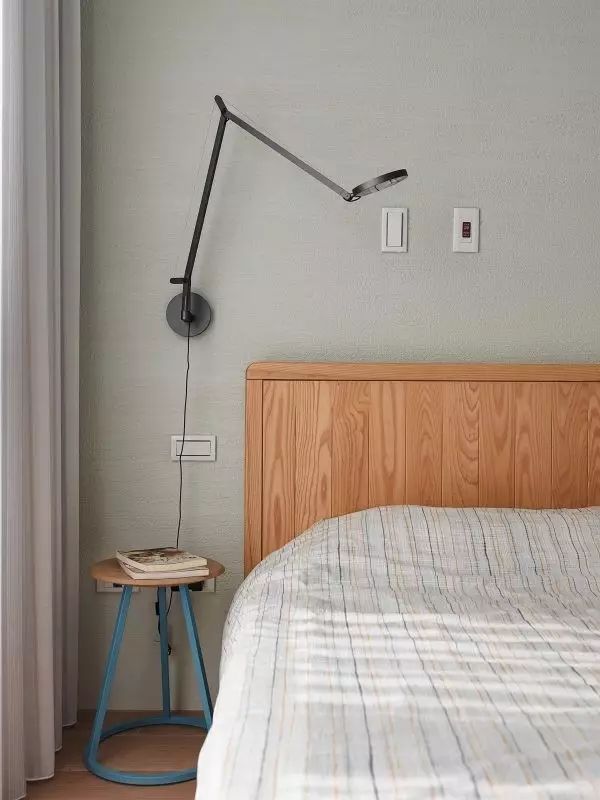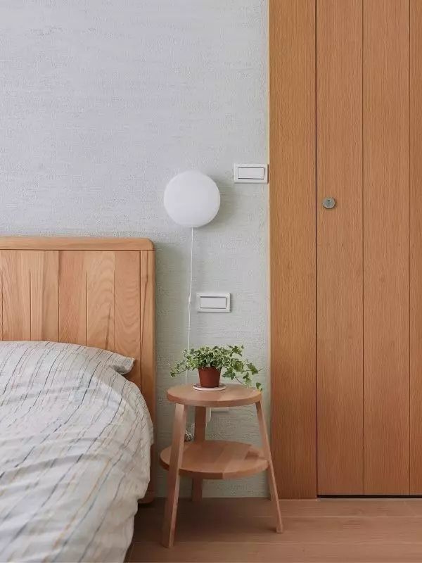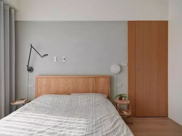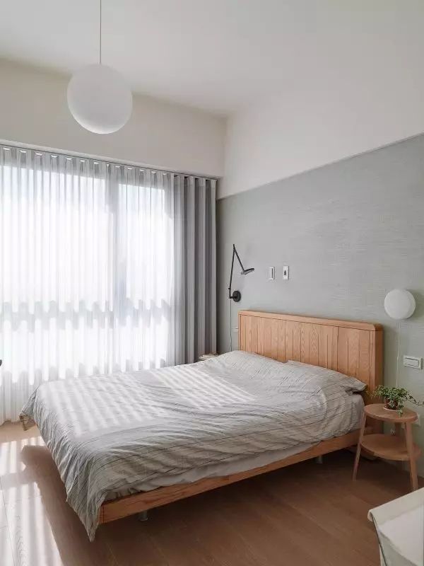 灰、白、原木三色,與斑斕的光影融為一體,非常和諧的畫面,也是最讓人舒眠的環(huán)境。