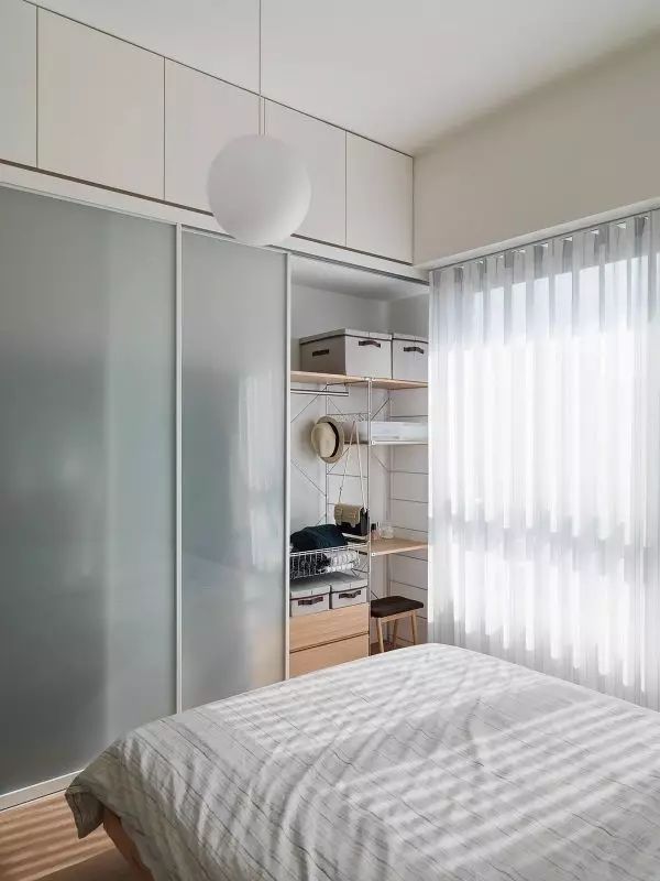 玻璃板衣柜門有反光的作用,使空間看起來(lái)更加寬敞明亮。