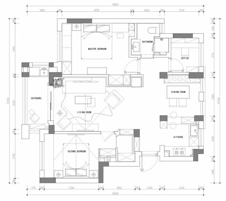 次臥延續(xù)了主臥的設計,只是床選擇黑色系的,似乎這樣的搭配也別有一番風味。