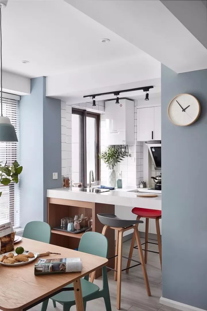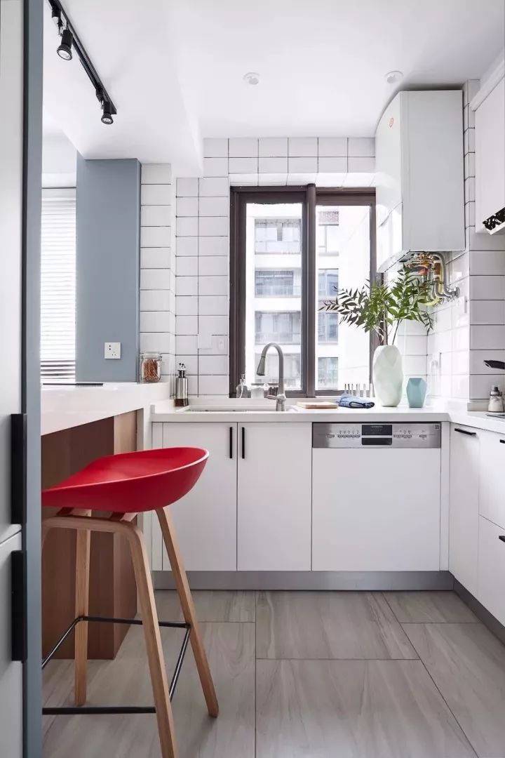 白色的小瓷磚,搭配白色的櫥柜,簡潔的北歐風很好的呈現(xiàn)出來了。