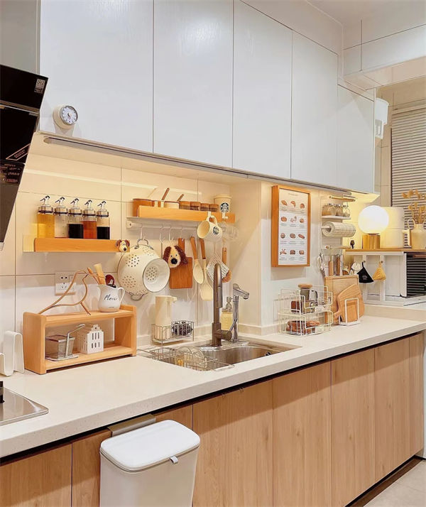 廚房臺(tái)面進(jìn)深60公分,吊柜進(jìn)深35公分,相差25公分,做飯不怕碰頭。