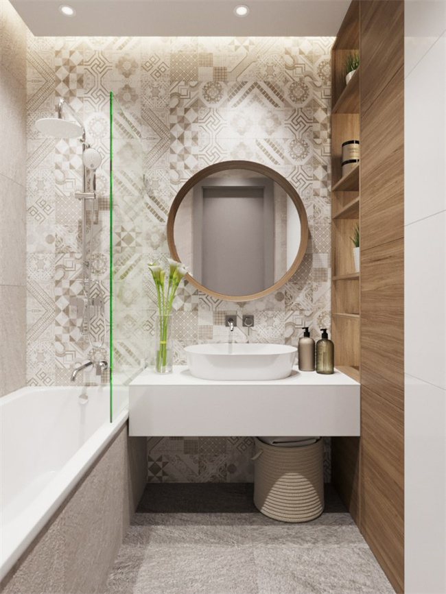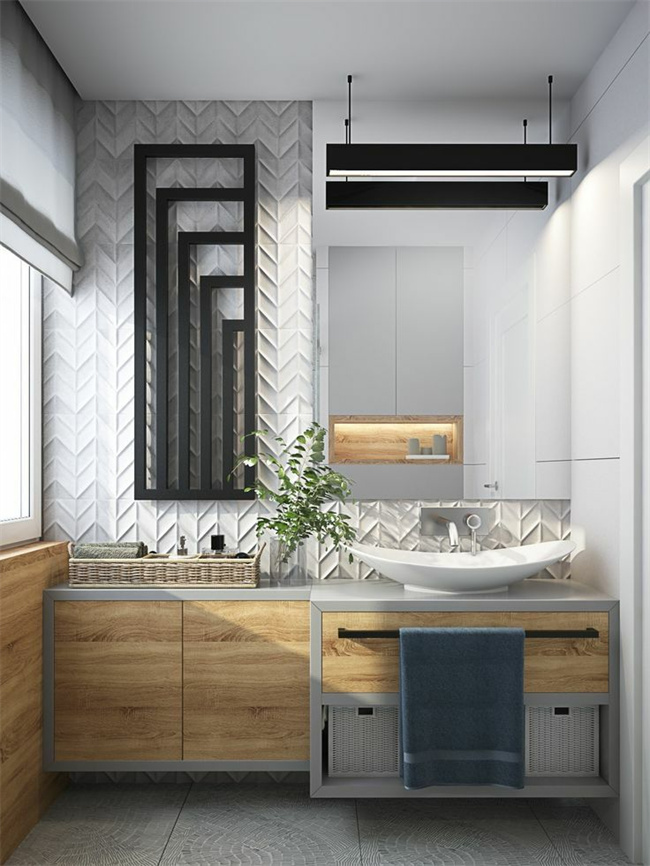 傳統(tǒng)洗漱臺,邊邊角角很難清理,懸浮式洗漱臺就容易清理多了,打掃時空間足夠?qū)挸āT偌由蠠艄獾脑O(shè)計,整體都明亮不少。