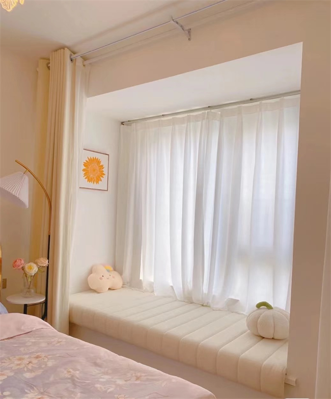 無論飄窗的基礎(chǔ)用什么材質(zhì),都可以在飄窗臺上墊上一層布藝墊子。尤其是瓷磚的飄窗,墊上墊子后,能讓飄窗顯得更加溫馨舒適,緩解瓷磚單薄冰冷的質(zhì)感。