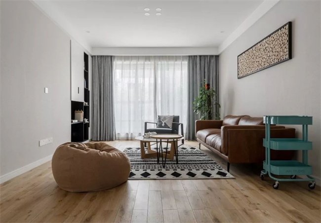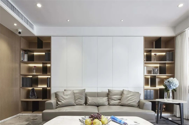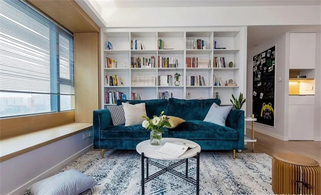 將沙發(fā)往前移一下,留出柜子的空間,不管是作為書架藏書使用,還是作為展示柜使用,都非常合適。