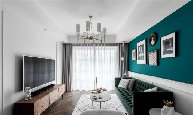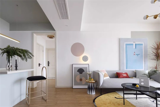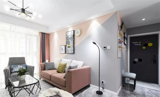 與乳膠漆搭配使用,拼色設(shè)計(jì)讓沙發(fā)背景墻顯得更靈活多變。