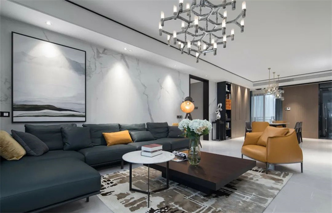 可以在沙發(fā)背景墻上面做一排射燈,用燈光烘托氛圍更棒。