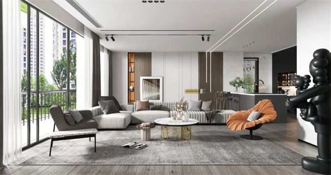 開放式客餐廚也是最常見的設(shè)計(jì),不僅可以有效增強(qiáng)采光,還可以形成良好的空間互動氛圍,促進(jìn)家人間的交流。