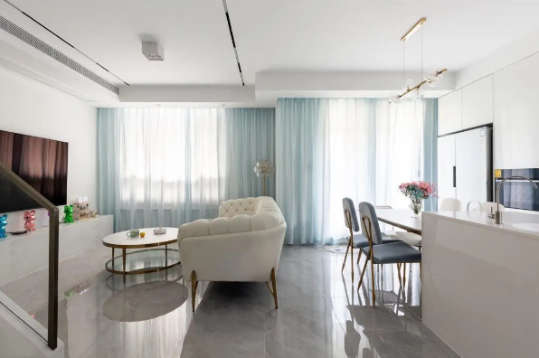 一般常規(guī)布局即是客廳+餐廳的設(shè)計(jì),如果空間足夠,還可加裝島臺(tái),讓餐廳的功能更加完善。
