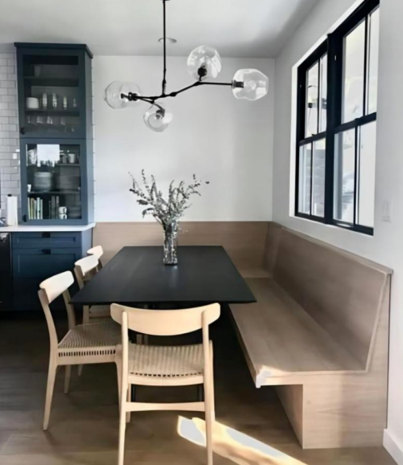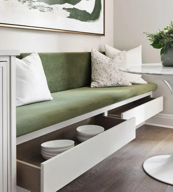 卡座底部是儲(chǔ)物柜,既節(jié)省了空間,又有著不錯(cuò)的裝飾性,能坐能置物,可以說(shuō)美觀與實(shí)用并存!小編非常推薦小戶型家庭嘗試!