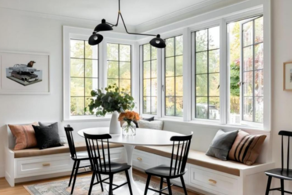 總的來(lái)說(shuō),卡座最大的優(yōu)點(diǎn)就是收納功能很強(qiáng)大,可同櫥柜、餐邊柜一體化,讓收納空間也得到最大化。而且卡座式餐廳也更有情調(diào),顯得更加浪漫,顏值較高。