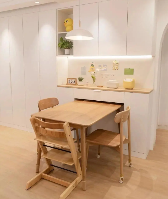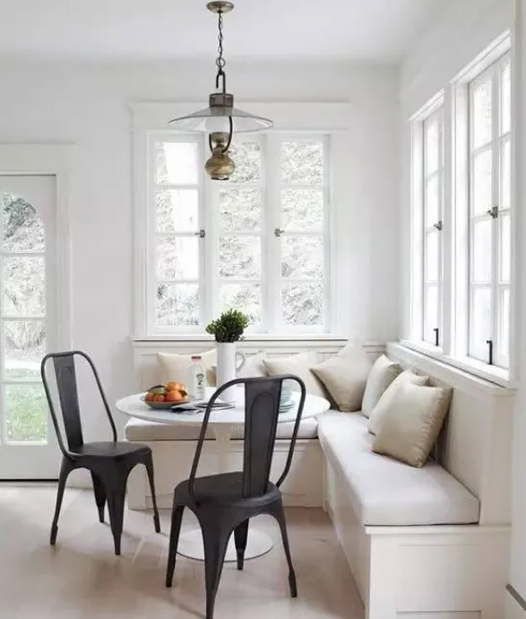 很多小戶型的餐廳都小,放下一桌四椅后過(guò)道又變窄了,這時(shí)候選擇設(shè)計(jì)卡座最合適不過(guò)。