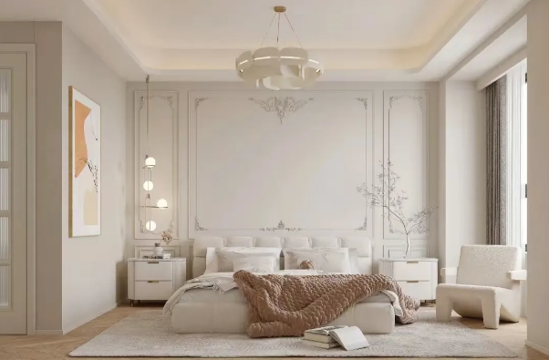 直接對整面墻進行裝飾,可以使用在客廳、臥室等大面積需要裝飾的空間,如背景墻的設(shè)計,電視墻,沙發(fā)墻,床頭背景根據(jù)設(shè)計風(fēng)格來決定造型及材質(zhì),也可以用來做配合墻面做隱藏門。一組完整的整面墻護墻板分別由“造型飾面板”、“頂線”、“踢腳線”組成。