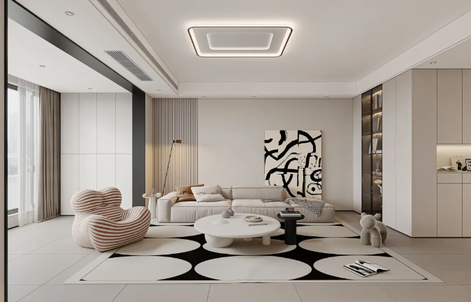 奶油色作為主色調(diào),為家增添了一份溫馨與浪漫。搭配灰色門(mén)框作為跳色,讓整個(gè)空間充滿生機(jī)與活力。同時(shí),淺色調(diào)的運(yùn)用也使得空間更加明亮、寬敞。